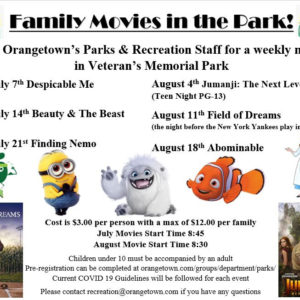 The Town of Orangetown's Parks & Recreation Staff invite residents to join them for a weekly movie in Veteran's Memorial Park. … [Read more...] about Orangetown Parks & Rec offer weekly ‘Family Movies in the Park’