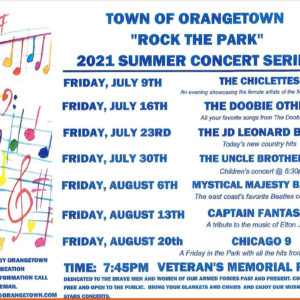 The Town of Orangetown's "Rock the Park" 2021 Summer Concert series will begin on Friday, July 9th, with the Chiclettes. Concerts begin at 7:45pm in Veterans Memorial Park. … [Read more...] about Orangetown “Rock the Park” series to begin July 9th
