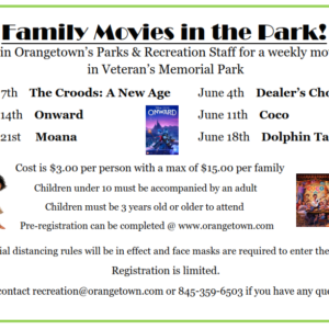 Join Orangetown's Parks & Recreation Staff for a weekly movie in Veteran's Memorial Park beginning in May. … [Read more...] about Movies in the park return to Orangetown