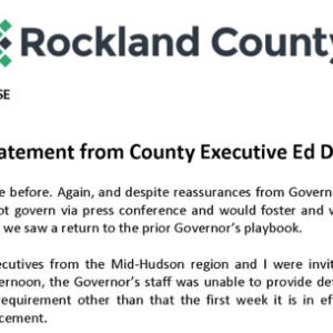 From Rockland County Executive Ed Day: We have seen this movie before. Again, and despite reassurances from Governor Hochul after she took office that she would not govern via press conference and would foster and welcome discussion with County Executives today we saw a return to the prior Governor’s playbook. While other County Executives from the Mid-Hudson region and I … [Read more...] about County Executive Day Responds to NYS New Mask Requirements