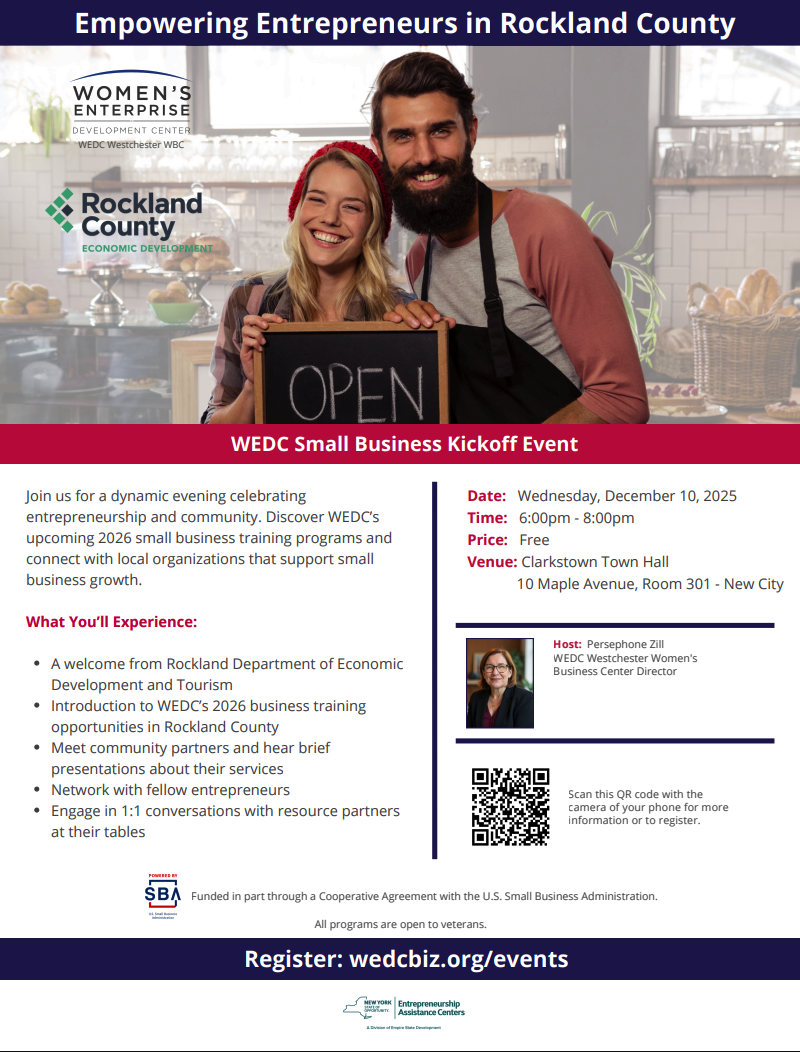 Rockland County — Local entrepreneurs will soon have access to expanded training and support through a new partnership between Rockland County and the Women’s Enterprise Development Center (WEDC). The initiative aims to strengthen small businesses in Orangetown, Clarkstown, and Stony Point, with a separate program in development for Ramapo and Haverstraw. County officials say the…