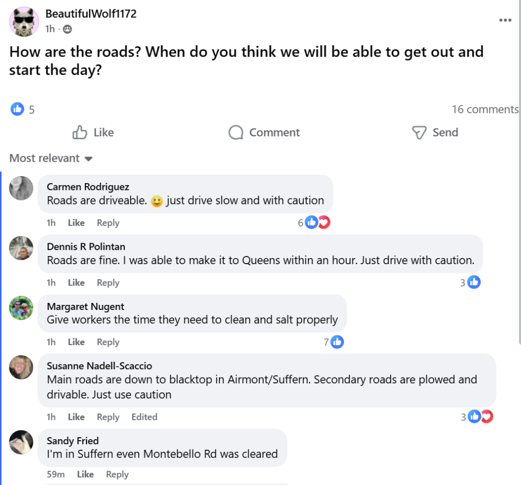 Generally, local social media influencers – such as “Bill”, and “Karen” seemed to confirm that the main highway roads were generally safe to navigate – so long as people drove slow…and didn’t check social media while driving.